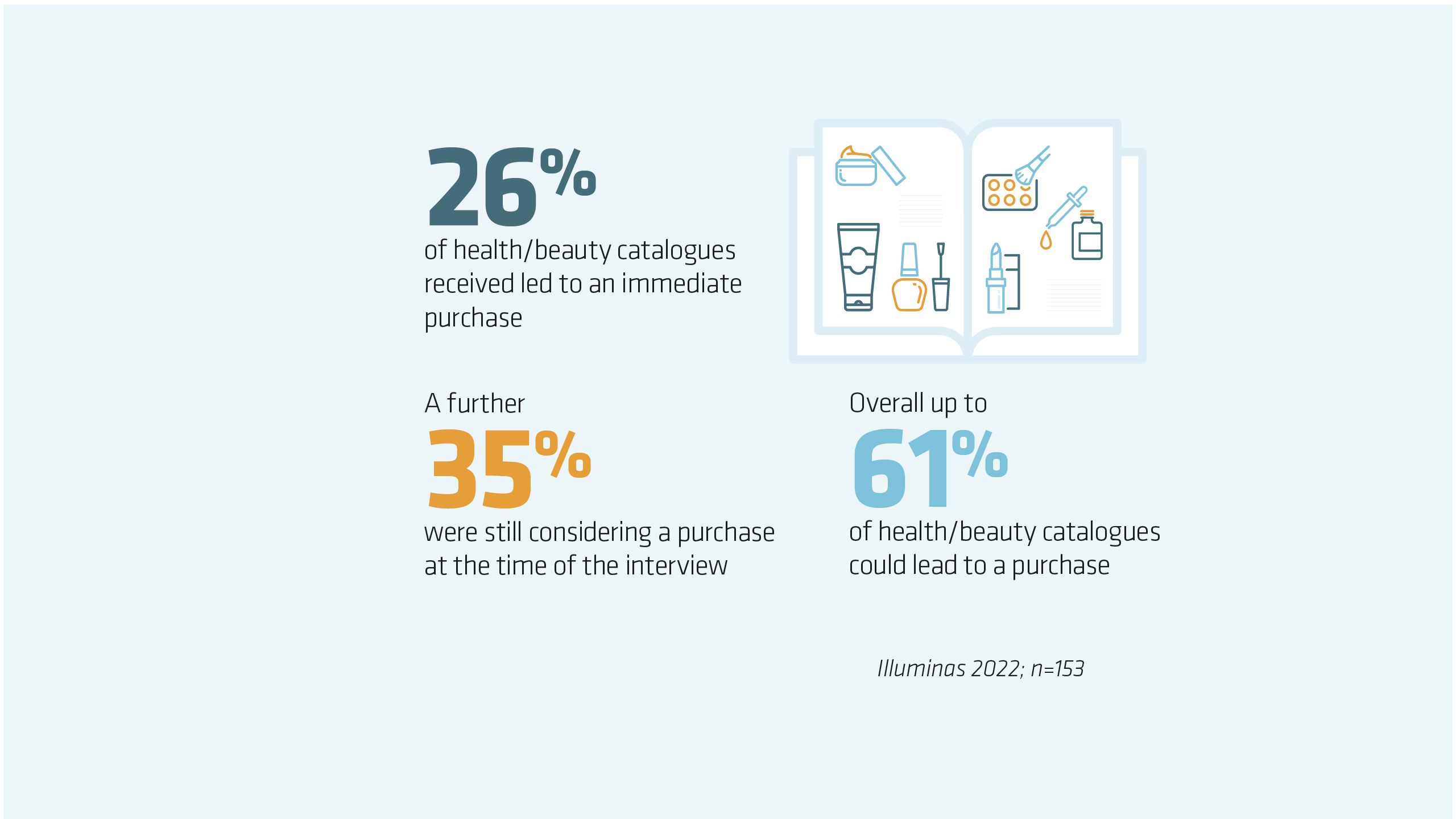 Marketreach found at least 26% of health and beauty catalogues lead to a purchase.