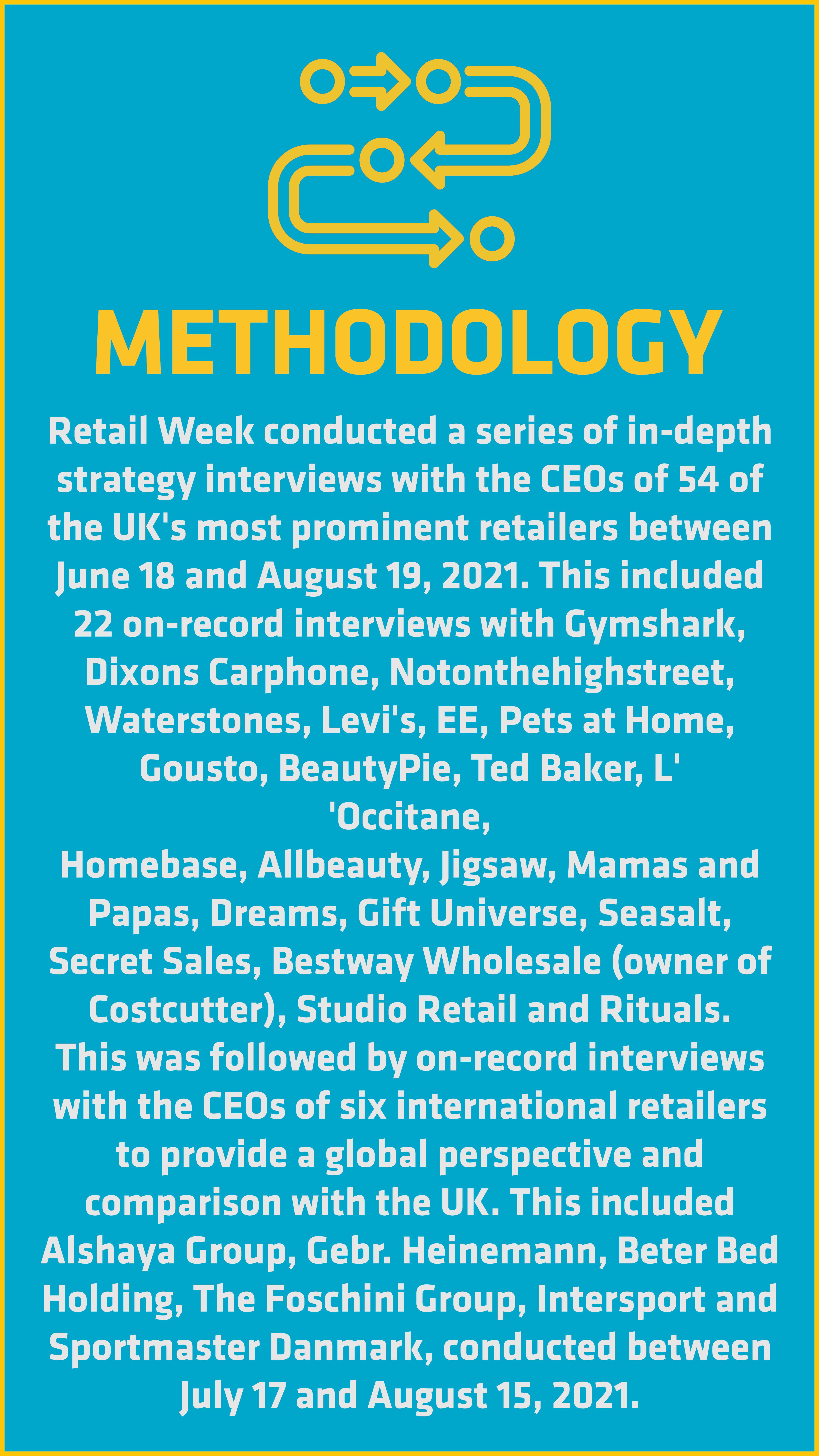 They were keen to talk. In past years, we have interviewed 25 UK chief executives. This year, however, we more than doubled that to 53 UK interviews and six international interviews. The retail chiefs were eager to share their experiences from these tumultuous 18 months and their hopes for next year.